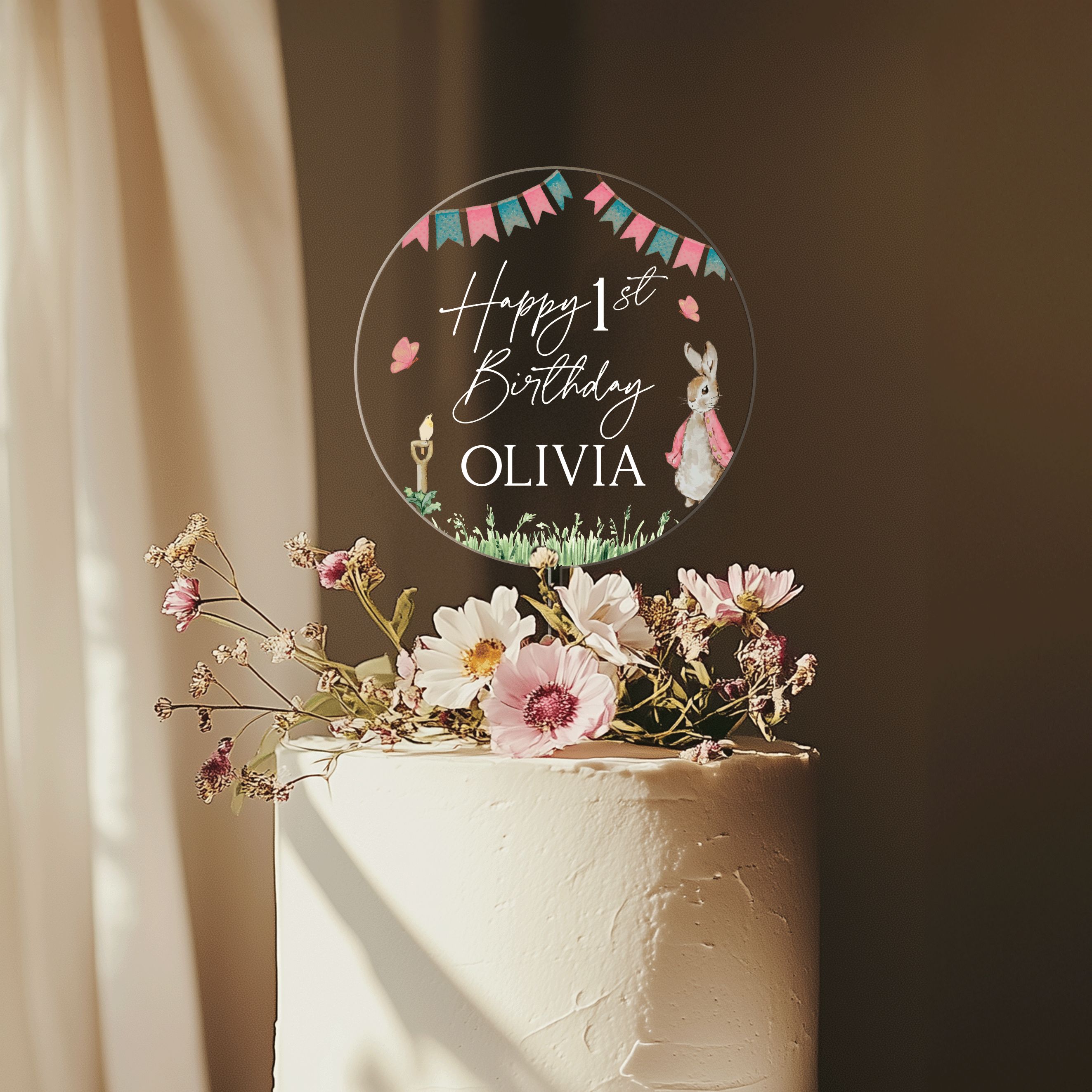 Baby Girl 1st Birthday Cake Topper, Peter Rabbit First Birthday Acrylic Cake Topper