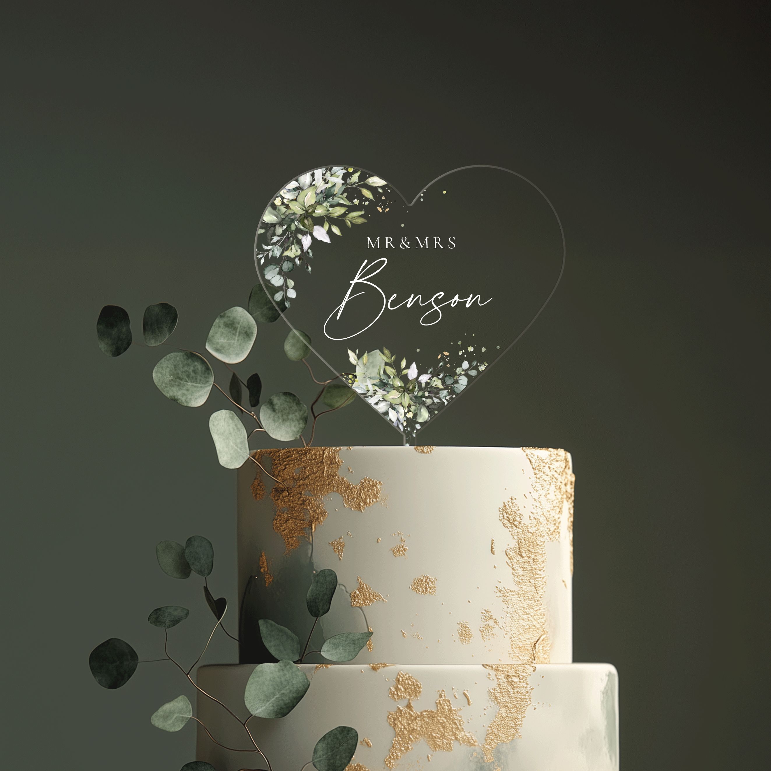 Eucalyptus Heart Cake Topper, Acrylic Cake Topper for Wedding