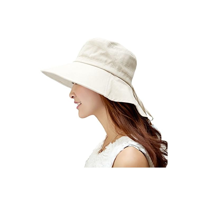 Comhats Womens Summer Flap Cover Cap Cotton UPF 50 Sun Shade Hat with Neck Cord