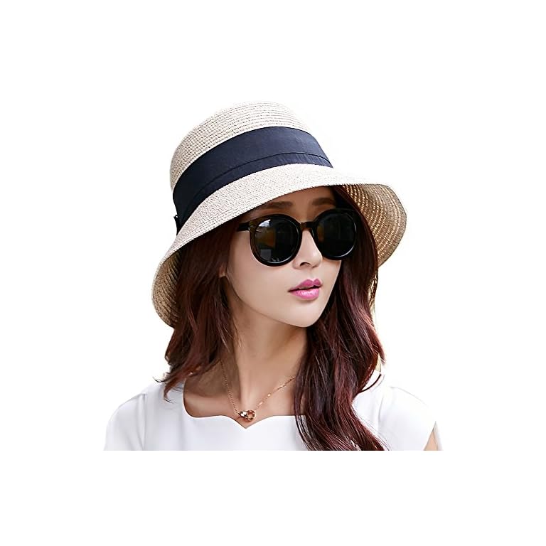 FURTALK Womens Beach Sun Straw Hat UV UPF50 Travel Foldable Brim Summer UV Hat
