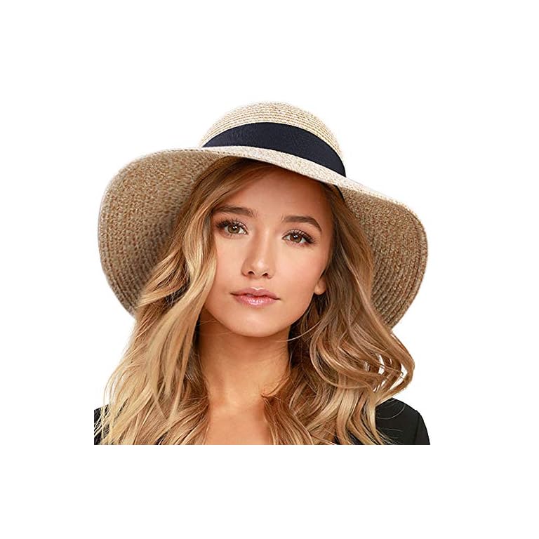 Sun Hats for Women, Floppy Wide Brim Beach Hats with UV UPF 50 Protection Straw Cap