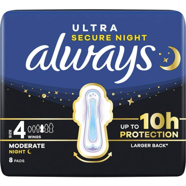 Always Ultra Secure Night Moderate Pads Size 4 8’s